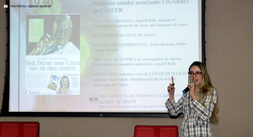A oncologista Janice Freitas, do Hospital Regional de Taguatinga (HRT), ministrou a apresentação, abordando medidas preventivas, sintomatologia, métodos diagnósticos e um breve histórico do enfrentamento à doença. A médica ressaltou a importância de manter o combate ao cigarro, sobretudo o eletrônico, cada vez mais comum entre pacientes jovens.