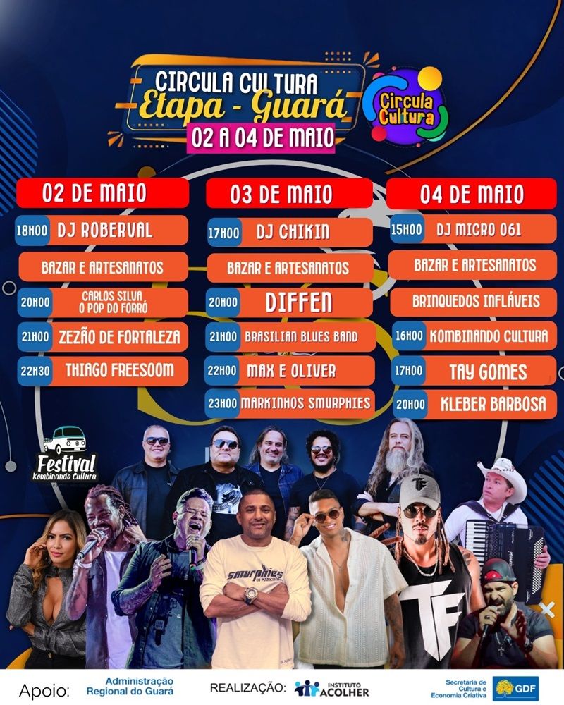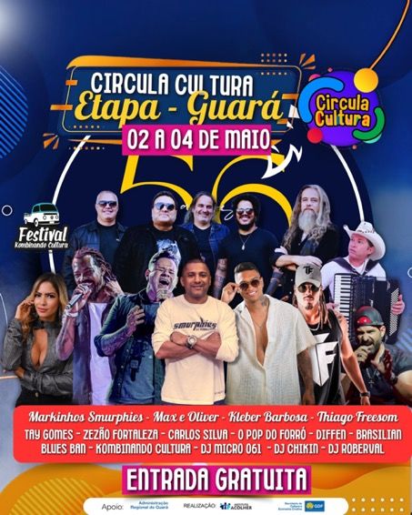 O projeto Circula Cultura chega à sua próxima parada com uma edição especial no Guará, cidade vibrante do Distrito Federal que celebra 56 anos de história, tradição e desenvolvimento. Nos dias 2, 3 e 4 de maio, a Praça da Moda QE 40 será o cenário de uma grande festa cultural, com entrada gratuita e uma programação repleta de atrações para toda a família.