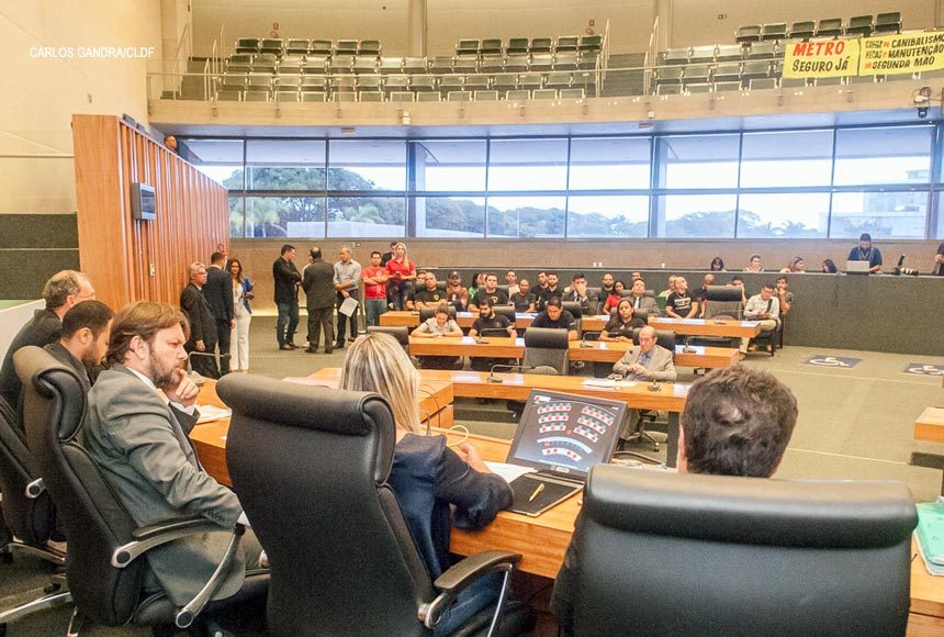 Criação de uma Frente Parlamentar em Defesa do Metrô DF; apresentação de emendas a projetos de lei que tratam de remanejamentos orçamentários para permitir a contratação de concursados; gestões junto ao GDF para que parte do crédito de R$ 1,2 bilhão – que seriam destinados ao Iprev – já aprovado seja direcionada a investimentos no metrô; além da convocação do presidente da companhia, Marcelo Dourado, para prestar esclarecimentos foram alguns dos encaminhamentos da reunião pública para discutir a situação dos metroviários, realizada no plenário da Câmara Legislativa nesta quarta-feira (7).