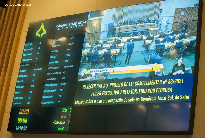 O projeto de lei complementar nº 88/2021, que dispõe sobre o uso e ocupação do solo no comércio das entrequadras da Asa Sul, foi aprovado em primeiro turno pela Câmara Legislativa nesta quinta-feira (9). O PLC, que trata dos conhecidos “puxadinhos”, gerou longa discussão em plenário. Um acordo entre os parlamentares garantiu a aprovação do texto original do governo; as emendas apresentadas serão analisadas na votação em segundo turno, prevista para a próxima terça-feira (14).
