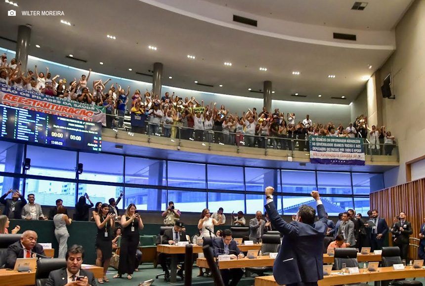 Com a galeria lotada, a Câmara Legislativa do DF (CLDF) aprovou, nesta terça-feira (8/Out), o Projeto de Lei (PL) 1.347/2024, de autoria do Poder Executivo, que reestrutura a carreira da categoria e concede reajuste à carreira de técnico em enfermagem. O PL foi aprovado em primeiro turno por 22 deputados e em segundo turno por 23 parlamentares.