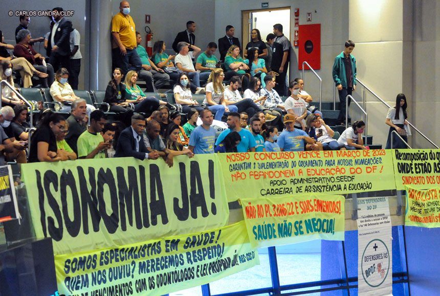Por sua vez, o projeto de lei nº 3.049/2022 acrescenta as especialidades Educador Físico, Direito e Legislação, Químico e Médico Veterinário no quadro que reúne trabalhadores do cargo de Especialista em Saúde. A matéria, de autoria do Executivo, estabelece prazo de 30 dias para que as atribuições das novas especialidades sejam definidas. Uma emenda, proposta pelo deputado Jorge Vianna (PSD), aprovada pelos deputados distritais, acrescentou ainda o Tecnólogo em Radiologia, especialidade que também exige formação em nível superior.