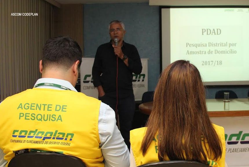 Esse é o objetivo da Pesquisa Distrital por Amostra de Domicílios – PDAD 2017/2018 realizada a cada biênio pela Codeplan, que já está na 5ª Edição. Desde março, pesquisadores do Instituto Euvaldo Lodi – IEL/Fibra – que presta serviços de coleta de dados à Codeplan -, estão em campo realizando o levantamento de dados para a PDAD 2018, prevista para ser divulgada no final do ano.