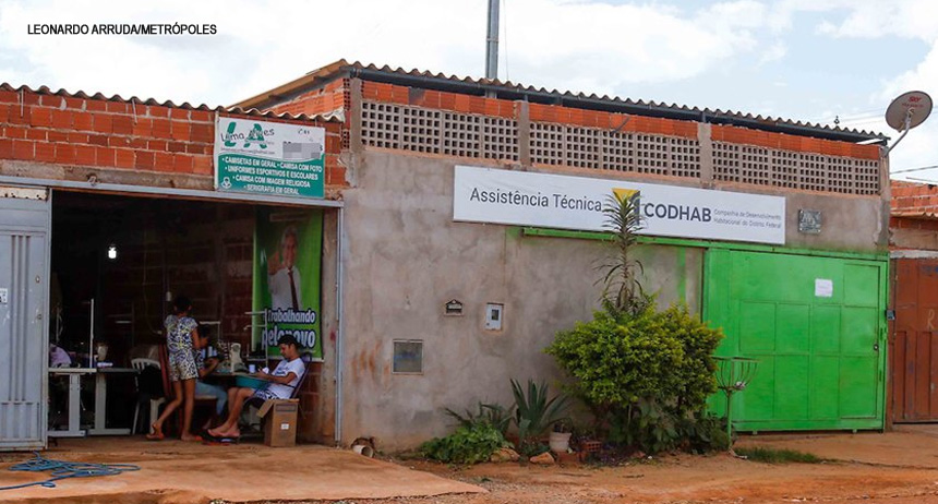 Vizinhos de porta, uma confecção e um posto da Companhia de Desenvolvimento Habitacional do Distrito Federal (Codhab) chamam a atenção de quem passa no Conjunto C, na QR 3, Vila Buritizinho, em Sobradinho 2. O lote onde funcionará a agência da Codhab é de propriedade de Jedson da Silva Nascimento, lotado no gabinete do parlamentar do distrital Lira (PHS). Já na loja, um cartaz enaltece a atuação do deputado: “Trabalhando pelo povo”.