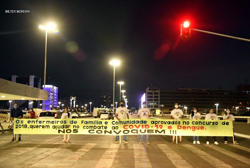Outra ação que chamou atenção foi realizada pela Comissão dos Enfermeiros Aprovados no Concurso de Saúde da Família, que aguardam nomeação. Na quinta-feira (4/Jun), os concursados distribuíram centenas de máscaras de proteção individual, reutilizável, na Rodoviária do Plano Piloto.