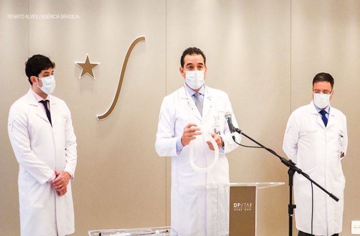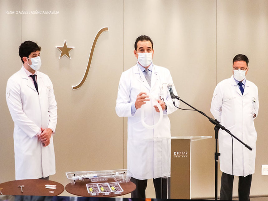 Durante a entrevista, Cuenca detalhou o procedimento e mostrou o principal equipamento usado na videolaparoscopia – um grampeador mecânico, o mesmo utilizado na cirurgia bariátrica feita por Ibaneis Rocha há alguns anos.