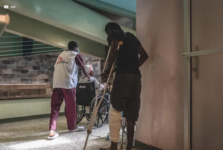 Mais de 30 centros médicos e hospitais fecharam as portas, incluindo o maior, L’Hôpital de l’Université d’ État d’Haïti, devido a atos de vandalismo, saques ou por conta da localização em áreas inseguras. O fechamento do aeroporto e dos portos desde fevereiro deixou as instalações médicas de MSF com falta de suprimentos.