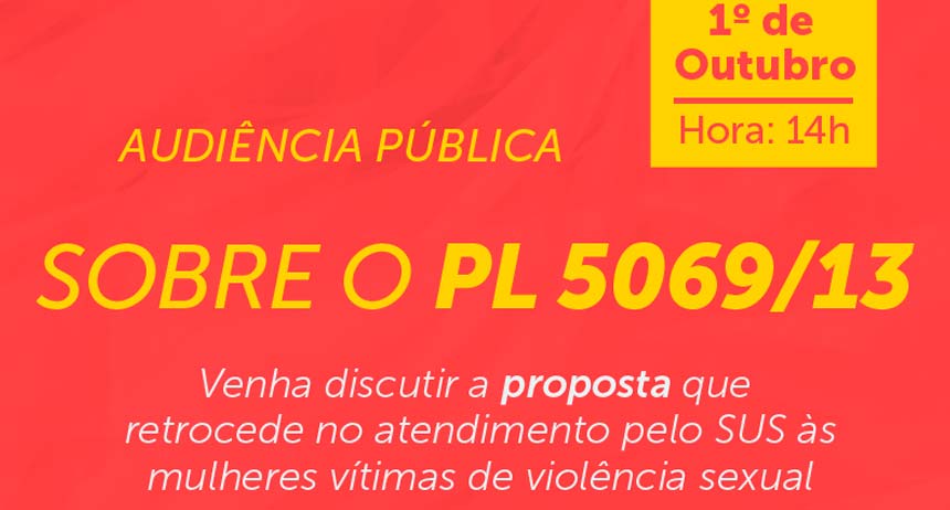 A Câmara dos Deputados discutirá nesta quinta-feira (1º) o Projeto de Lei 5069/13, que restringe o atendimento pelo Sistema Único de Saúde (SUS) às mulheres vítimas de violência sexual. O texto, em análise na Comissão de Constituição e Justiça e de Cidadania, atingirá os profissionais da área de saúde que prestarem auxilio às mulheres que sofrerem esse tipo de violência. O debate ocorrerá durante audiência pública na comissão, às 14h, por iniciativa da deputada Erika Kokay (PT-DF): será no Plenário 1, do Anexo II, da Câmara Federal.