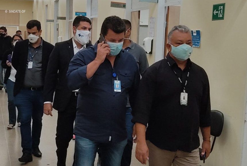 Em decorrência de diversas denúncias recebidas, o diretor do Sindicato dos Auxiliares e Técnicos do Distrito Federal Newton Batista esteve na manhã desta terça-feira (16) no Hospital Regional de Santa Maria, juntamente com o deputado distrital Jorge Vianna (Podemos), Conselho de Saúde, Conselho Regional de Enfermagem (Coren), Ordem dos Advogados do Brasil (OAB) e Sindicato dos Enfermeiros para apurar irregularidades tais como: sobrecarga de trabalho, falta de EPI’s , condições de trabalho dos profissionais e atendimento aos pacientes.