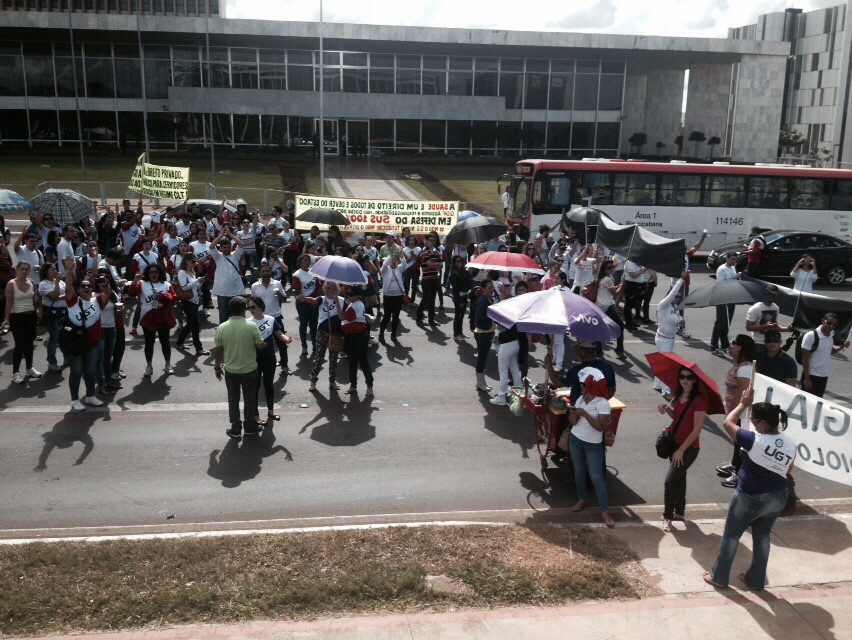 O Ato foi realizado em repúdio a escolha da Fundação de Direito Público-Privado para modelo de gestão da Saúde do DF e também para pedir ao GDF que nomeie os concursados aprovados que aguardam nomeação.
