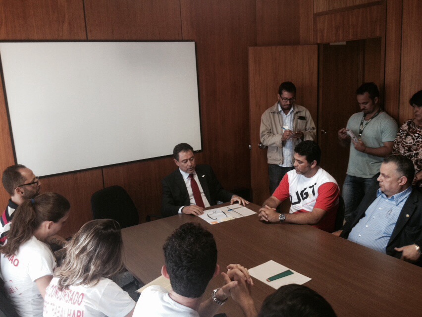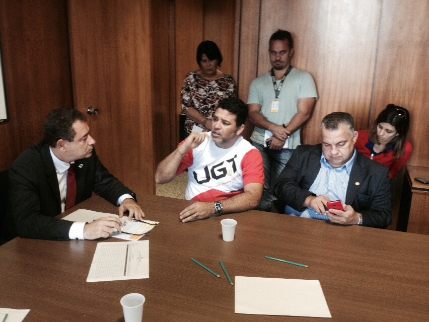 Os representantes da Comissão Mista foram recebidos pelo chefe de gabinete da Secretaria de Estado de Relações Institucionais (SERIS), Moisés do Espírito Santo Júnior, a assessora especial da Subsecretaria de Relações do Trabalho e do Terceiro Setor, Fátima Guedes. Durante a reunião ficou definido que Júnior tentará reunir o secretário da Fazenda (SEFAZ), Leonardo Maurício Colombini de Lima, e o Secretário de Estado de Saúde (SES-DF), João Batista de Sousa, para reunião que acontecerá na próxima segunda-feira (6/Jul).