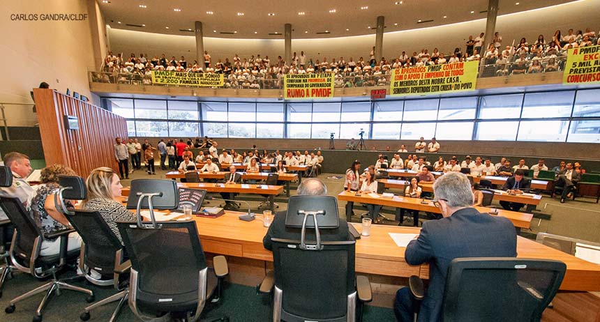 A Câmara Legislativa vai se engajar na luta dos concursados excedentes ao cargo de soldado da Polícia Militar, a fim de sensibilizar o governo local para ampliar as vagas e retomar a contratação de candidatos excedentes, que se classificaram no cadastro reserva. A decisão foi anunciada por vários deputados distritais que participaram, na tarde desta quinta-feira (8), de comissão geral para discutir a questão, iniciativa da deputada Celina Leão (PDT), presidente da Casa. São cerca de dois mil candidatos excedentes que ainda aguardam as contratações.