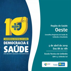 Segunda-feira (10/abr), a região Sudoeste, das RAS Taguatinga, Samambaia e Recanto das Emas, realizam a conferência de saúde, das 8h às 18h, no Centro Cultural Taguaparque, no Pistão Norte de Taguatinga.