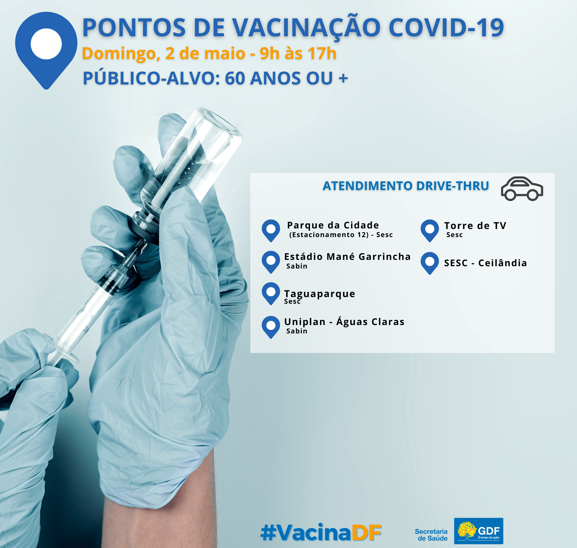 A vacinação contra a covid-19 continua no final de semana e a Secretaria de Saúde, em parceria com o Serviço Social do Comércio (Sesc) e com o laboratório Sabin, irão abrir 19 pontos no sábado (1º) e seis no domingo (2) para atender a população que faz parte do grupo prioritário. Serão aplicadas primeiras e segundas doses durante o funcionamento dos postos de vacinação.