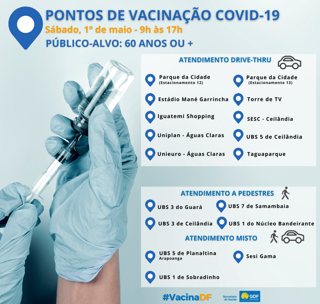 Confira os pontos de vacinação abertos no DF neste fim de semana