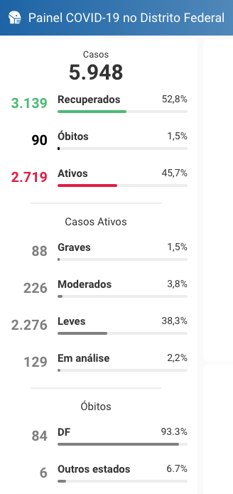 O Distrito Federal registrou, nesta sexta-feira (22/Mai), seis mortes por coronavírus – esse número se repete, desde terça-feira (19/Mai). Cinco dessas mortes ocorreram entre a manhã e a tarde desta sexta. Assim, a capital do país soma 84 mortes pela Covid-19. Desse total, seis óbitos ocorreram em unidades hospitalares do DF, mas são de moradores do Entorno.