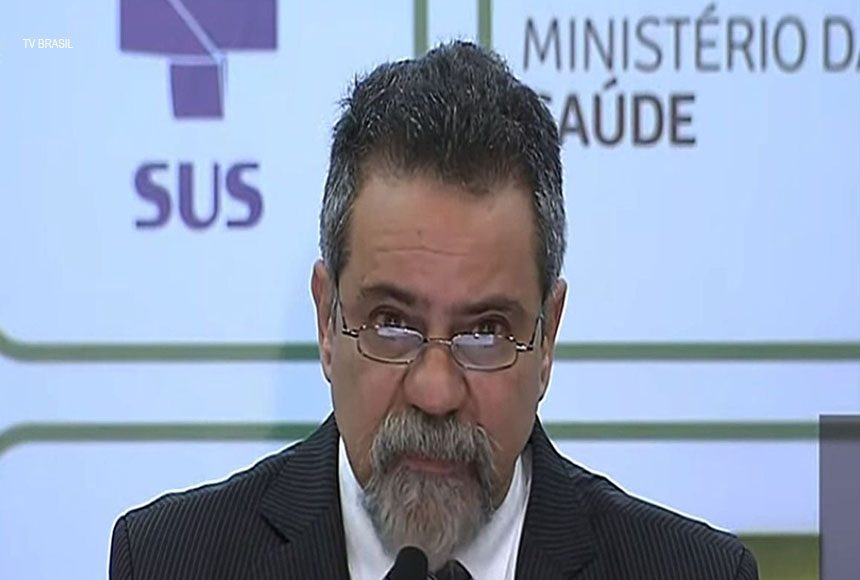 O secretário-executivo do Ministério da Saúde, Elcio Franco, participa neste momento de coletiva de imprensa para atualização do balanço de entregas de medicamentos e insumos estratégicos no combate à covid-19.