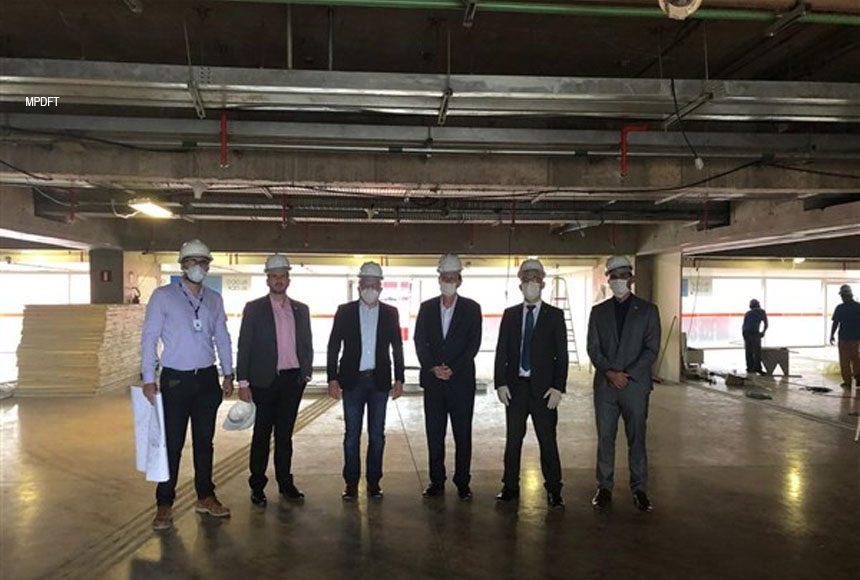 Membros do Ministério Público do DF e Territórios (MPDFT) estiveram nesta quinta-feira, 16 de abril, no Estádio Nacional de Brasília para fiscalizar as obras de instalação de 200 leitos para tratamento de pacientes diagnosticados com a Covid-19. As obras tiveram início em 11 de abril e têm previsão de término em 5 de maio.