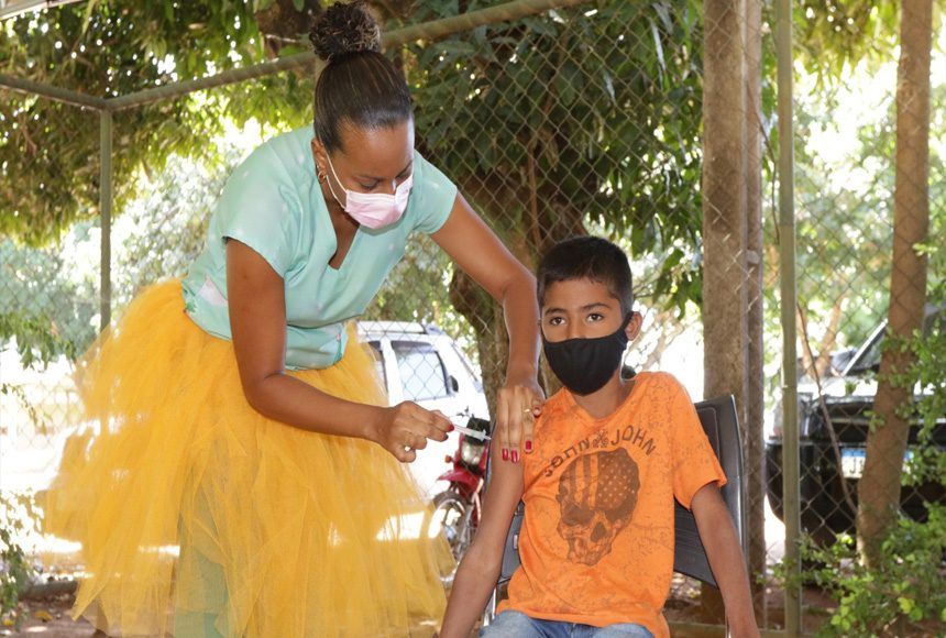 Com o uniforme da escola, Sara Hevelyn da Silva Andrade, 11 anos, saiu da aula e foi direto tomar a primeira dose. A mãe da criança, Cristiana Andrade da Silva, 43 anos, disse que a filha estava ansiosa e fez questão de ir direto da escola. Ao lado de duas amigas, comemorou a vacinação.