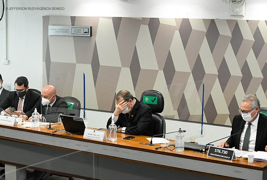 O relator Renan Calheiros (MDB-AL) e o vice-presidente da Comissão, senador Randolfe Rodrigues, apontaram, a partir de documentos recebidos pela CPI, os detalhes do esquema que desclassificou empresas vencedoras de processos licitatórios para a venda de testes de covid — a Abbott e a Bahiafarma —em benefício da Precisa.