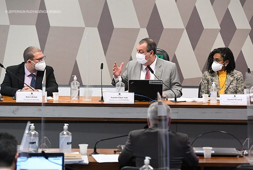 Quantas das mais de 500 mil mortes por covid-19 poderiam ter sido evitadas no Brasil? De acordo com Pedro Hallal, epidemiologista e pesquisador da Universidade Federal de Pelotas, quatro em cada cinco mortes pela doença no país eram evitáveis caso o governo federal tivesse adotado outra postura — apoiando o uso de máscaras, medidas de distanciamento social, campanhas de orientação e ao mesmo tempo acelerando a aquisição de vacinas. Ou seja, de acordo com suas estimativas, pelo menos 400 mil pessoas não teriam morrido pela pandemia. Ele fez a afirmação nesta quinta-feira (24) durante audiência na Comissão Parlamentar de Inquérito (CPI) da Pandemia, da qual também participou Jurema Werneck, diretora-executiva da Anistia Internacional no Brasil e representante do Grupo Alerta.