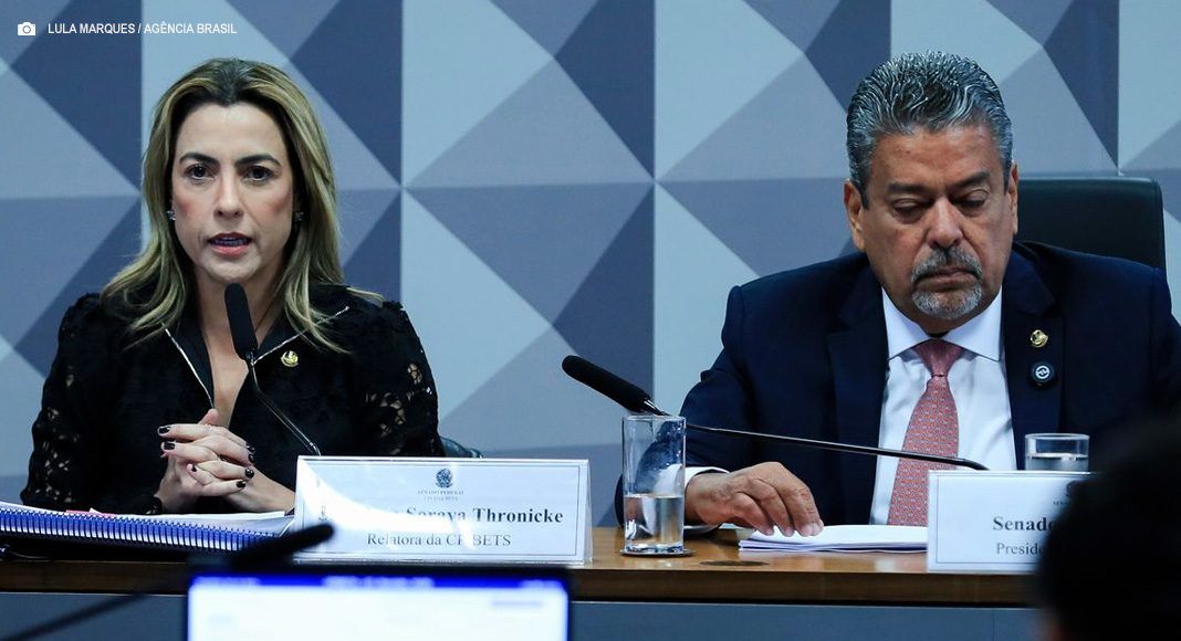 Por quatro votos contra três, a Comissão Parlamentar de Inquérito (CPI) das Bets rejeitou nesta quinta-feira (12) o relatório final da senadora Soraya Thronicke (Podemos-MS). Com isso, a comissão é concluída sem ter adotado nenhuma medida, como pedido de indiciamento das influenciadoras Virginia Fonseca e Deolane Santos.