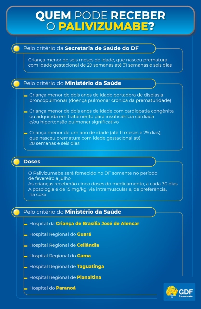 “Essa medicação é oferecida pelo SUS e também está disponível nos serviços privados desde 2018”, informa Miriam Santos. “Com a reorganização dos serviços de saúde no DF, aumentou o acesso da população a esses serviços”. No total, 3.402 crianças receberam o medicamento de 2014 a 2020. “De 50 a 80% das crianças são acometidas pelo vírus [VSR] no primeiro ano de vida”, relata a pneumologista e pediatra Emmanuelle de Sousa Neas Pedroso, responsável pela autorização e prescrição do medicamento no HRGu.