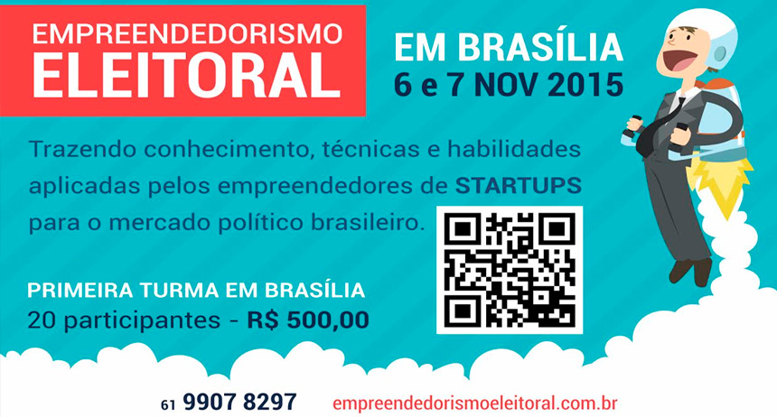 A forma de se perceber e se lidar com as necessidades das pessoas estão mudando. E no ambiente político, em processos de campanhas eleitorais e gestão de mandatos não é diferente. E essa é a proposta de uma equipe brasiliense que, em um ambiente de startup, traz o curso Empreendedorismo Eleitoral que agrega ao velho conceito do marketing político, novas metodologias e recursos, voltados às necessidades e anseios das pessoas.