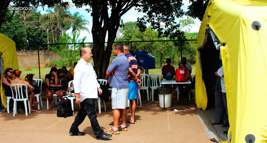 O presidente do Sindicato dos Médicos do Distrito Federal (SindMédico-DF), Gutemberg Fialho, visitou as estruturas provisórias de combate à dengue em São Sebastião e Brazlândia, nesta quarta-feira. O objetivo foi verificar as condições de trabalho e de assistência à população.