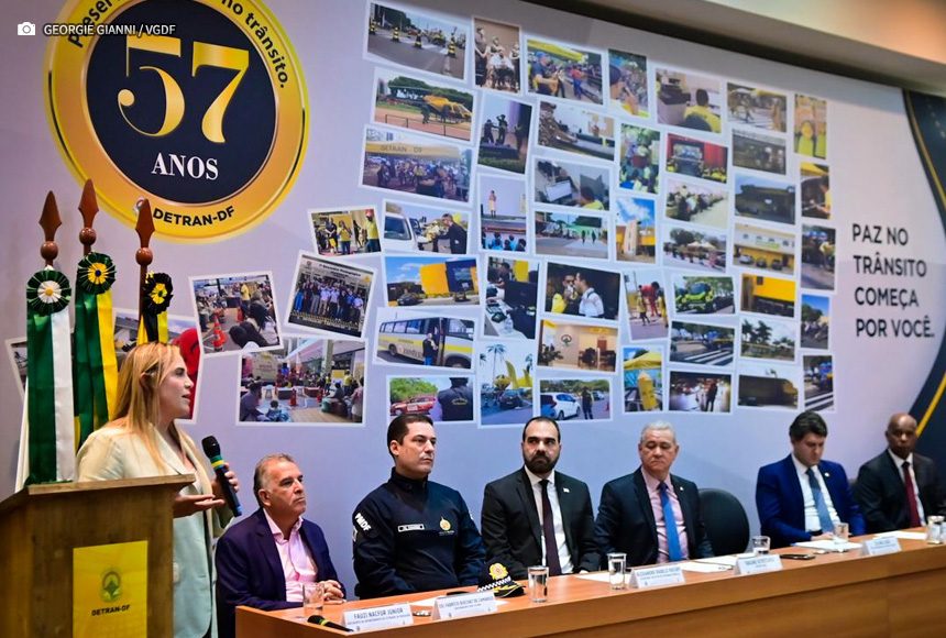 O Departamento de Trânsito do Distrito Federal (Detran-DF) comemorou, nesta quarta-feira (13), o aniversário de 57 anos do órgão, no auditório da unidade sede. O diretor-geral do Detran-DF, Takane do Nascimento, recebeu a vice-governadora do Distrito Federal, Celina Leão, e demais autoridades convidadas, que contou com a presença de 200 servidores.