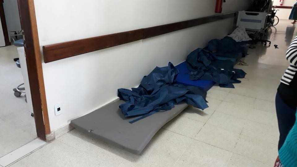 Além do desabafo, em fotos publicadas pelo sindicalista é possível ver ao menos três mulheres deitadas no chão do corredor do HRC.