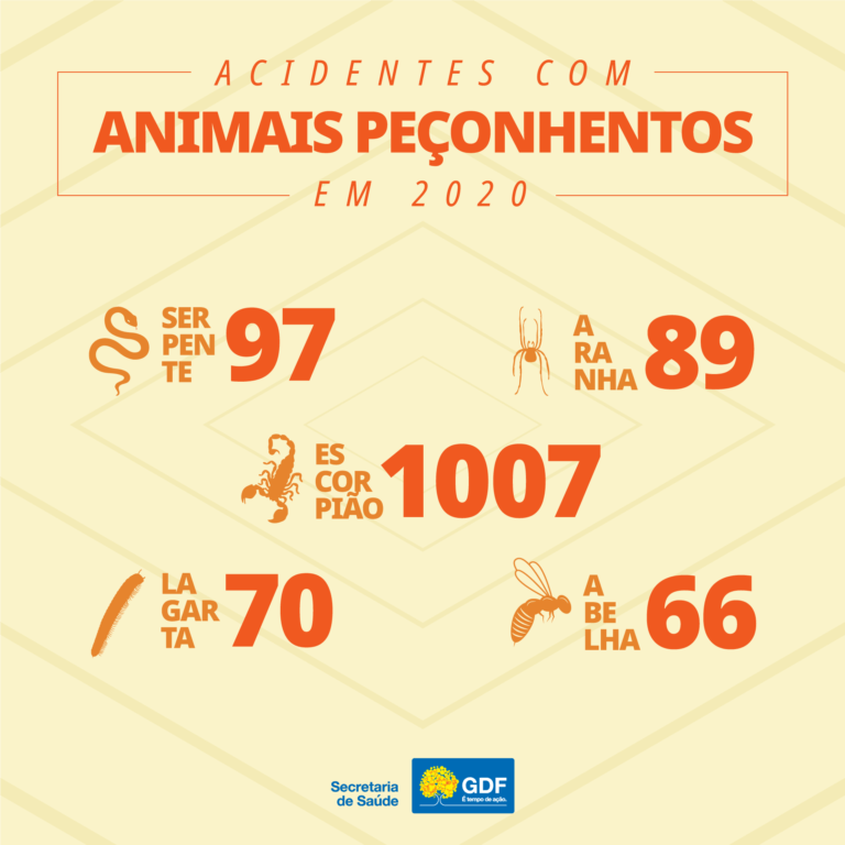 Uma preocupação constante para a saúde pública são os acidentes com animais peçonhentos. São diferentes áreas envolvidas no monitoramento dessas ocorrências, nas inspeções domiciliares e na educação e orientação para prevenir acidentes e o aparecimento de animais. Até o final do mês de julho foram registrados 1.388 acidentes no Distrito Federal.