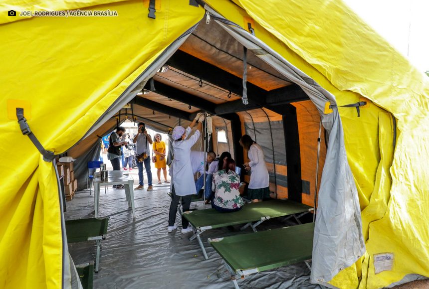 → HCamp: O Hospital de Campanha da Força Aérea Brasileira tem atendimento 24 horas, exclusivo para pacientes com sintomas de dengue.