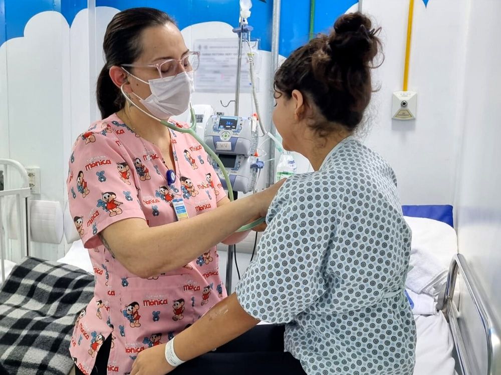 A atuação desses profissionais é marcada por desafios, mas também por histórias de superação e cuidado humanizado. É o que relata Adriana Rodrigues de Melo, mãe de Desmond Samuel Dourado, de 9 anos, internado no HRSM com um quadro de bronquiolite.