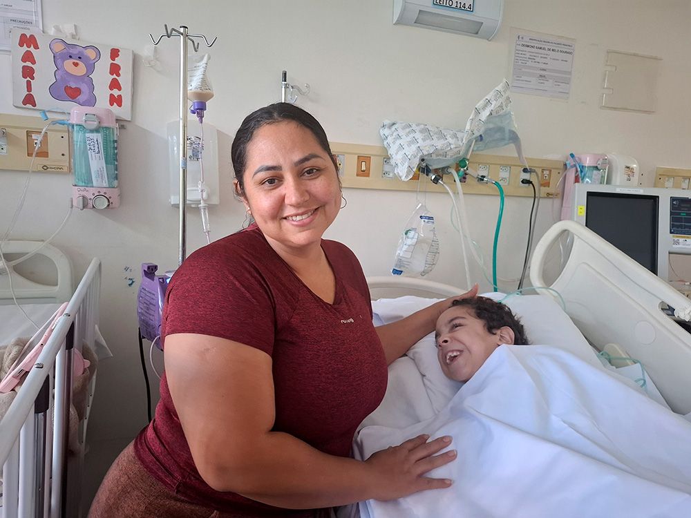 “Ele tem paralisia cerebral, causada por kernicterus, aquela icterícia intensa que atinge o sistema nervoso. Recentemente, pegou gripe, teve rinovírus, que evoluiu para pneumonia, com atelectasia nos dois pulmões. A internação aqui já dura 10 dias, mas estou muito feliz com o atendimento. Os pediatras demonstram um cuidado que meu filho merece. Ele está evoluindo melhor do que eu imaginava”, conta.