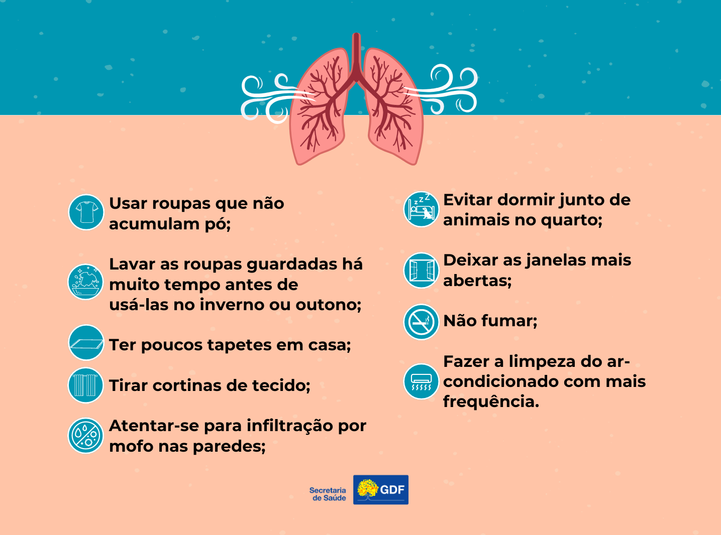 “O clima seco piora os sintomas respiratórios da asma e das doenças nasais alérgicas, como a rinite. Período em que ocorre as exacerbações da asma. Por isso, é tão importante redobrar o cuidado nesta época do ano”, destaca a pneumologista e Referência Técnica Distrital (RTD) de Asma da Secretaria de Saúde (SES-DF), Andrea Martha Rodrigues. Com a seca esperada para os próximos meses e a umidade relativa do ar abaixo dos 30%, as doenças respiratórias ficam mais frequentes.