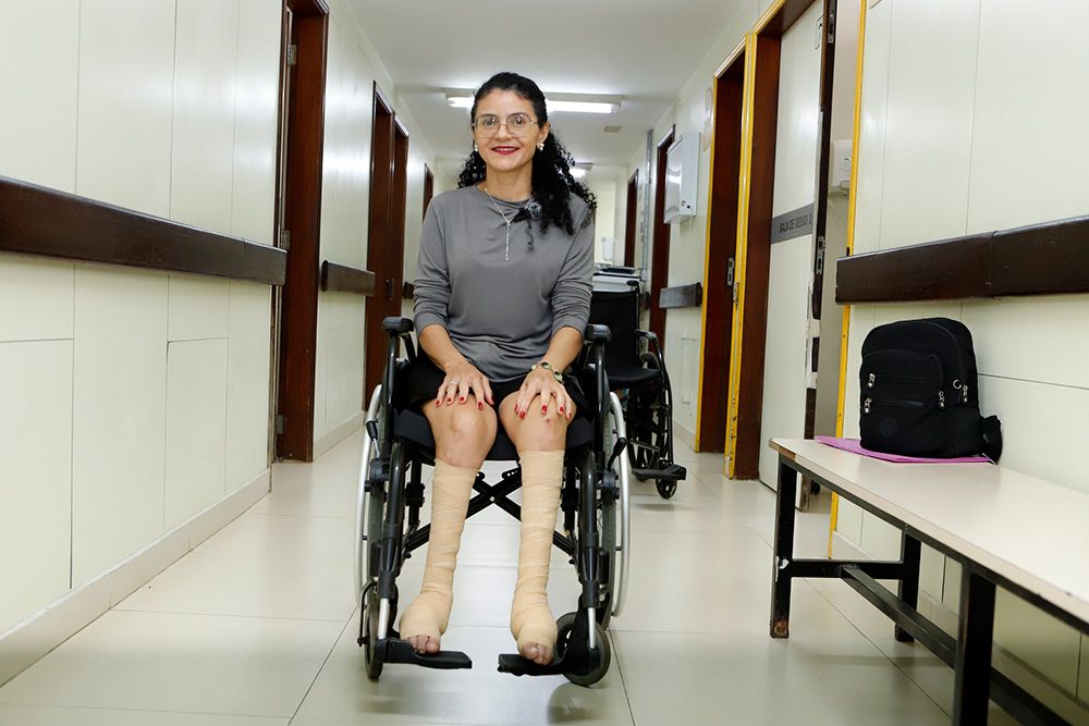 Dependendo do caso, é possível complementar a técnica com uma cirurgia óssea para terminar de corrigir os pés. Foi o que ocorreu com Jurema da Rosa, 54. A moradora do Rio Grande do Sul procurou o HBDF e, após o tratamento inicial, passou pela operação. “Eu estou me sentindo muito bem. É muito gratificante. Não tenho palavras para descrever.”