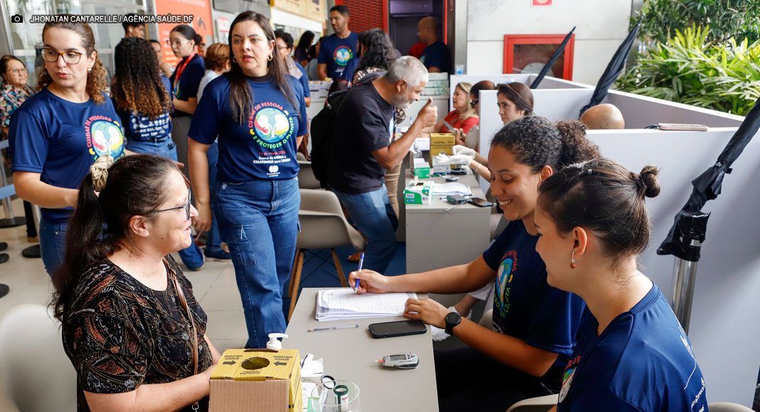 As atividades se estenderam ao prédio da Administração Central (ADMC) da Secretaria de Saúde. No local, os servidores da pasta tiveram a oportunidade de aferir a pressão arterial e a glicemia capilar, além de também realizarem o teste de creatinina. A ação foi complementada com a distribuição de folhetos educativos.