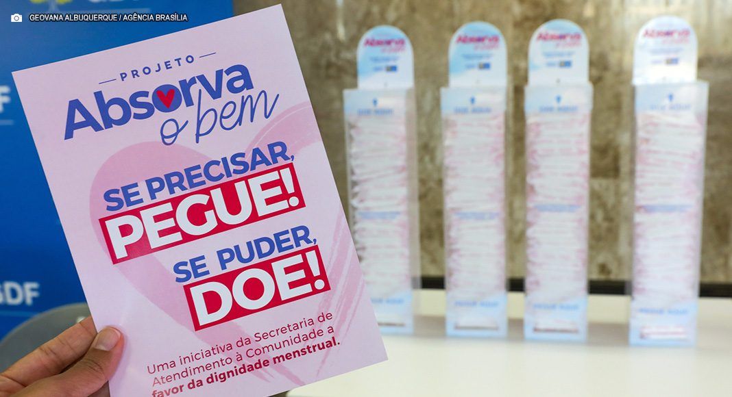 Desde 2021, o GDF conta com ações voltadas para a promoção da dignidade menstrual. Oito secretarias integram o projeto Dignidade Feminina que arrecada absorventes para serem disponibilizados a estudantes em situação de vulnerabilidade social que integram a rede pública do Distrito Federal.