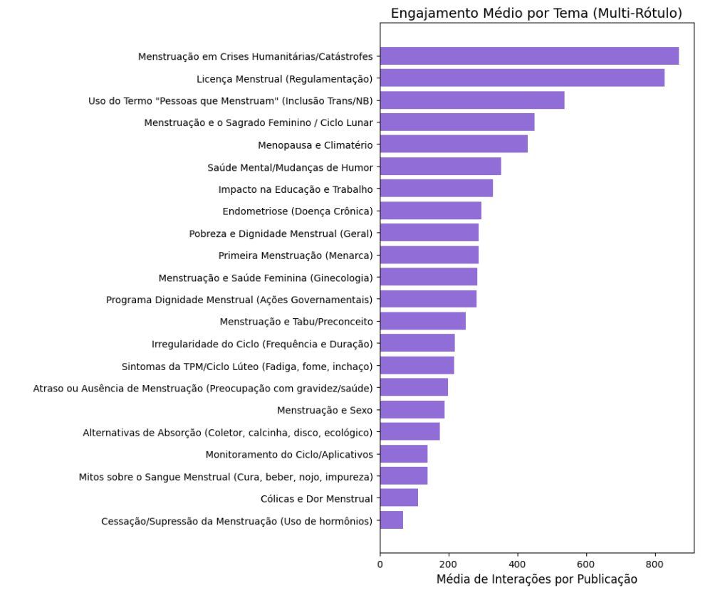 Os dados de engajamento indicam que a sociedade direciona sua atenção para a necessidade de o poder público fornecer soluções para o problema. O debate, portanto, transcende o âmbito da saúde individual e entra na esfera da equidade social. O tema do acesso e da legislação se mostra mais eficiente em gerar interações do que as postagens que tratam sobre a experiência física do ciclo menstrual.