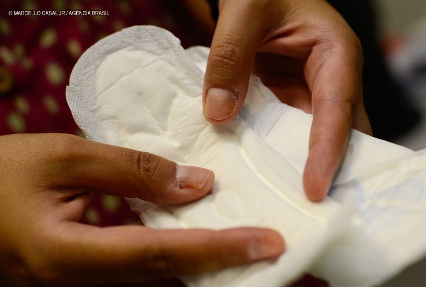 O Ministério da Saúde ressalta que milhares de pessoas não têm acesso a absorventes no país “e, em consequência, meninas deixam de frequentar aulas por vergonha, e mulheres usam formas inadequadas de contenção do fluxo, como papel higiênico e até miolo de pão”.