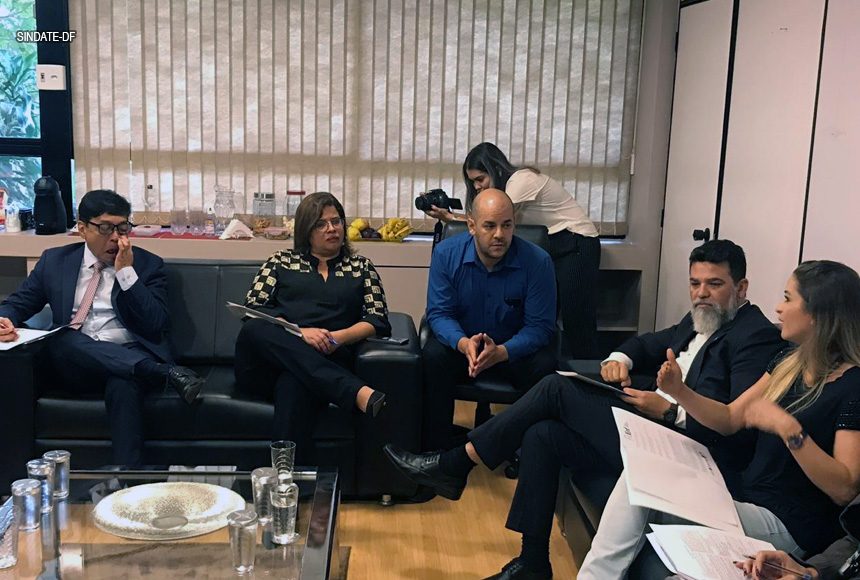 O Sindate-DF, como um dos representantes da Frente Única da Enfermagem (FUEnf), composta por entidades como SindEnfermeiro-DF, ABEn-DF e Coren-DF, em reunião com o secretário de Saúde Osnei Okumoto, deputado Jorge Vianna (Podemos) e gestores da SES, discutiu, na manhã desta terça-feira (21/05), na sede da Secretaria de Saúde, alterações na portaria 280/2019, que dispõe sobre os critérios para concessão de acesso ao perfil de chefia no Sistema de Registro Eletrônico de Frequência dos servidores da SES.