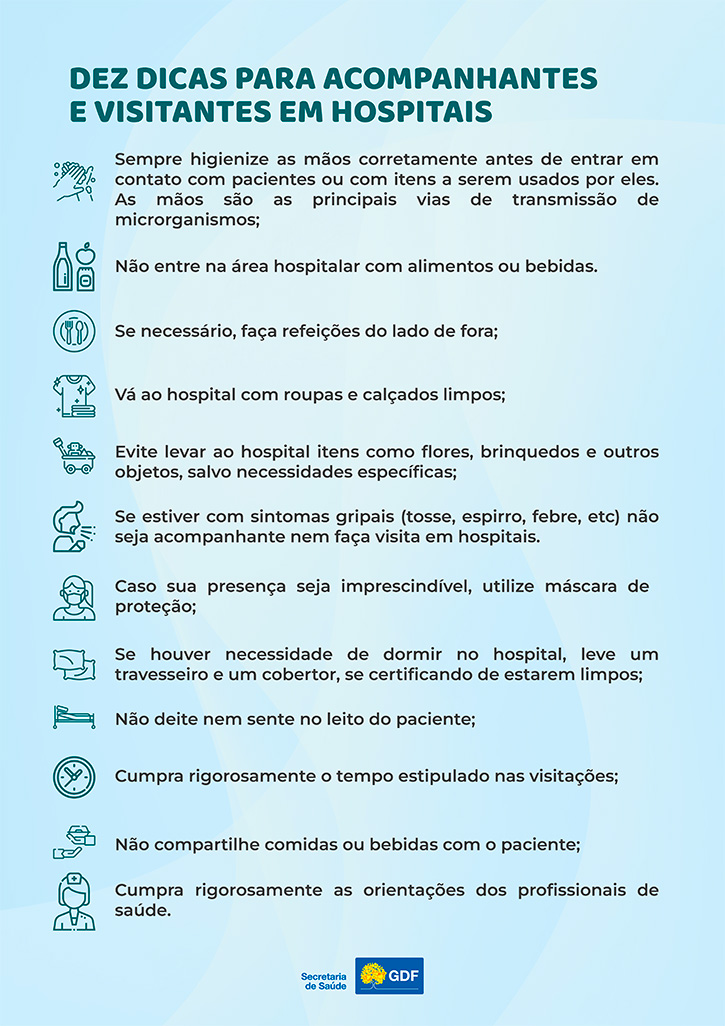 Um exemplo desse trabalho é visto no Hospital Regional de Ceilândia (HRC), onde há treinamentos de rotina para todos os envolvidos na assistência, desde as chefias até os responsáveis pela limpeza, passando por profissionais de saúde, seguranças e visitantes. Também há instruções específicas de preparo e distribuição de alimentos, troca de roupas de cama, vestimentas e asseio do ambiente.