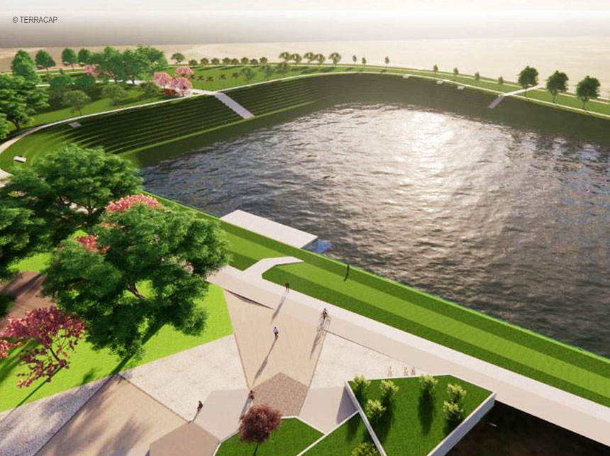 A lagoa de retenção vai comportar até 96 mil m³ de água, com um volume útil de 70 mil m³. Por estar dentro de um parque urbano, o acesso à bacia ficará protegido. “O reservatório será totalmente cercado por alambrados de aço galvanizado com 1.010 m de altura”, informa o diretor técnico da Terracap, Hamilton Lourenço Filho. “Também teremos placas informativas advertindo sobre o perigo de ultrapassar a barreira”.