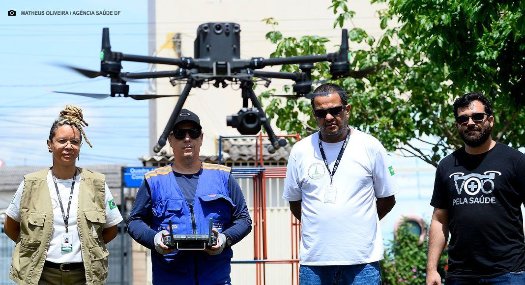 A Secretaria de Saúde do Distrito Federal (SES DF) iniciou a utilização de drones, contratados em projeto com a empresa GRS80 (Quem), para mapear focos do mosquito Aedes aegypti e otimizar as ações de vigilância (Por quê). As aeronaves não tripuladas atuam desde outubro (Quando) em diversas regiões administrativas, como o Paranoá, onde realizaram mapeamento aéreo na última sexta-feira (07/Nov) (Onde/Como), com o objetivo de orientar com precisão as equipes de campo (O quê).