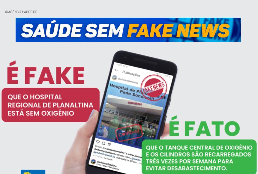 Um vídeo com informações falsas sobre o Hospital Regional de Planaltina (HRPl) está circulando na internet, de forma irresponsável, e mobilizando pessoas a fazerem doações de oxigênio para a unidade hospitalar. O vídeo, que tem duração de 29 segundos, traz a foto da fachada do hospital, com cilindros ilustrando o banner, e uma voz feminina dizendo que a unidade amanheceu sem o insumo hospitalar. Também circula no instagram uma publicação com o mesmo conteúdo.