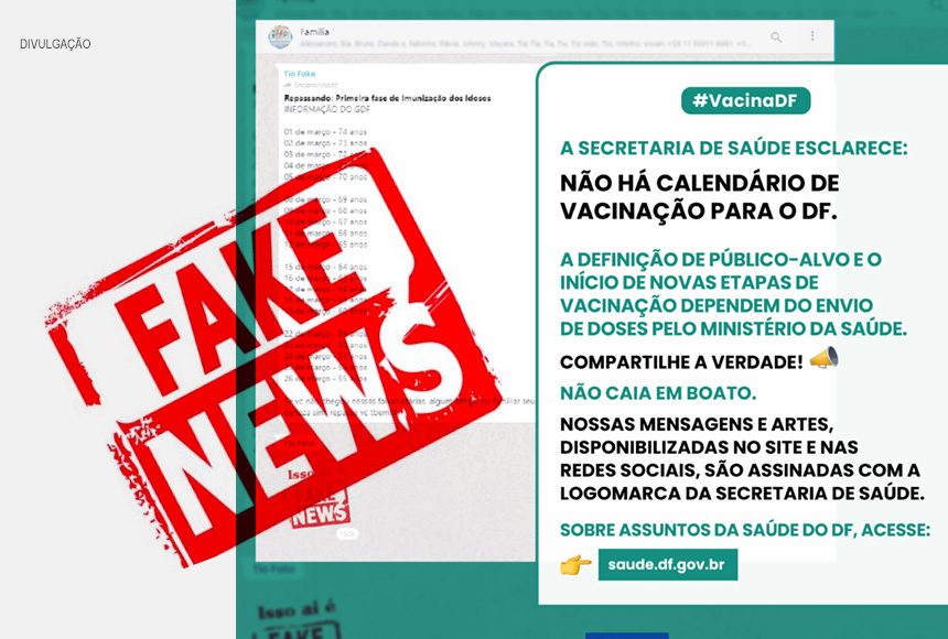 Todas as informações relacionadas à vacinação no DF podem ser encontradas na página #VacinaDF, no site da Secretaria de Saúde. Recebeu uma notícia suspeita? Desconfie e, na dúvida, não compartilhe!