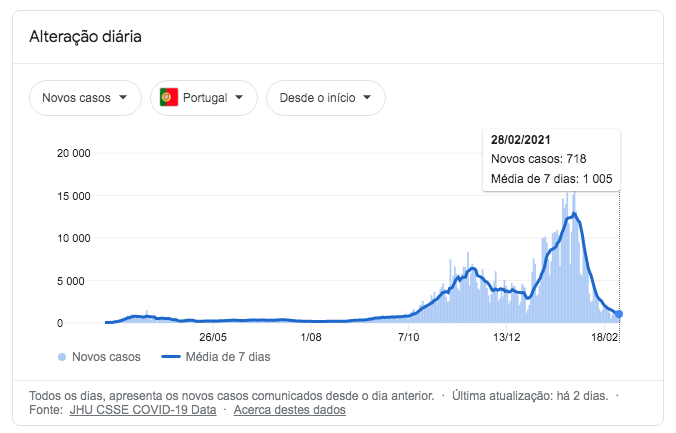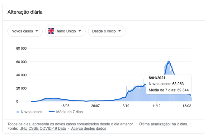 Portugal que era uma das principais referências no combate ao covid-19 no mundo, também passou por experiência semelhante no final de 2020. Referencial turístico, após ter a sequência das férias de verão e, ‘afrouxado’ em relação as regras sanitárias, o país teve uma escalada de casos, com ápice de aproximadamente 17 mil casos. Após declarar fechamento de fronteiras e lockdown, em 15 de janeiro desse ano, o país reduziu, em 28 de fevereiro, a quantidade para 718 casos confirmados.