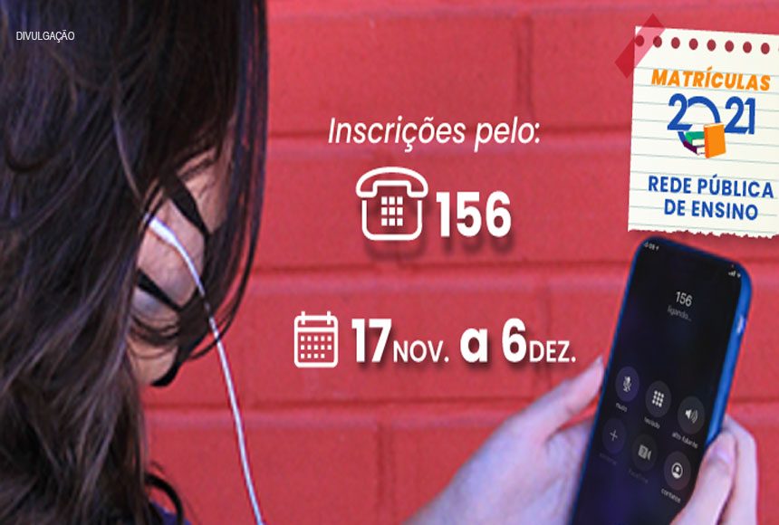 De 17 de novembro até 6 de dezembro, a Central 156, opção 2, também está disponível para inscrições de novos estudantes para o ano letivo de 2021. Para esse tipo de atendimento, as ligações podem ser feitas de segunda a sexta, das 7h às 21h, e sábados, domingos e feriados, de 8h às 18h.