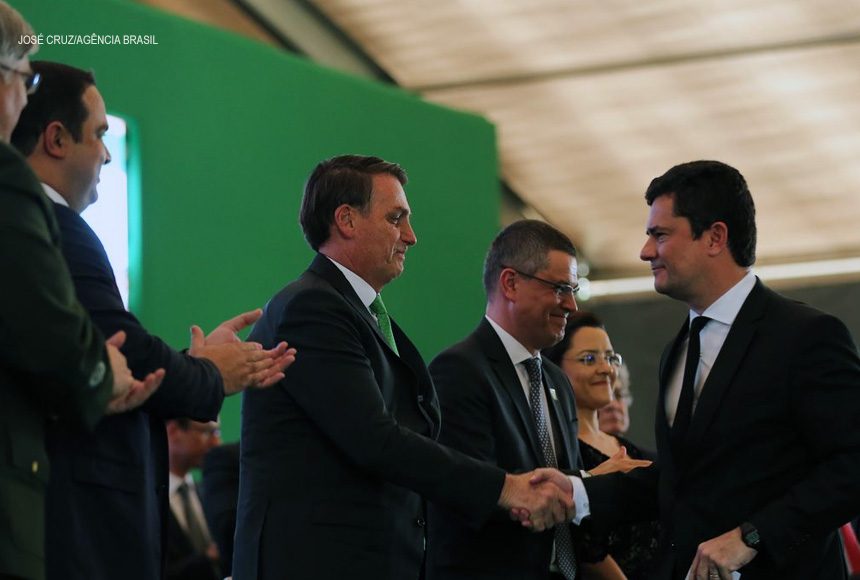 O presidente Jair Bolsonaro (PSL) participou, na manhã desta sexta-feira (8/Nov), da cerimônia de encerramento do curso de formação de novos policiais federais, realizada na Academia Nacional de Polícia, da Polícia Federal (PF), em Brasília. Na ocasião, Bolsonaro atribuiu ao ministro da Justiça, o ex-juiz, Sérgio Moro, ser alçado a condição de mandatário do país.